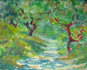 3 kleine aquarellen uit 'de tuin', plm 10 - 13 cm elk